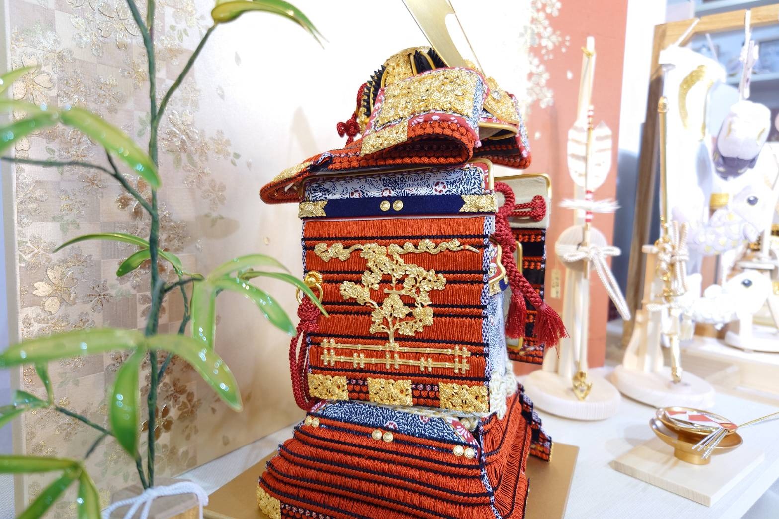 立派な奉納鎧ですので、高さがある屏風を一緒にお飾りいただくのがオススメです!