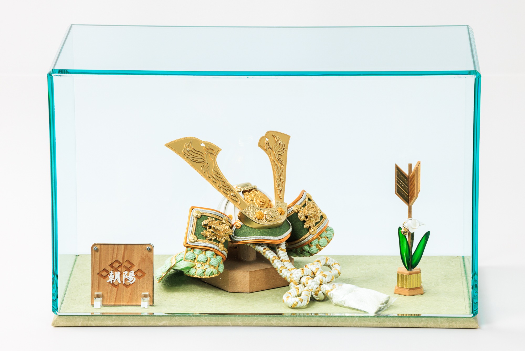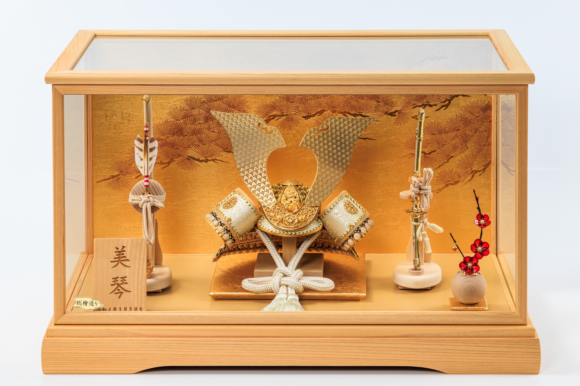 上の画像のセットでは、兜・矢立・お名前の3つでシンプルにセッティングしていますが、