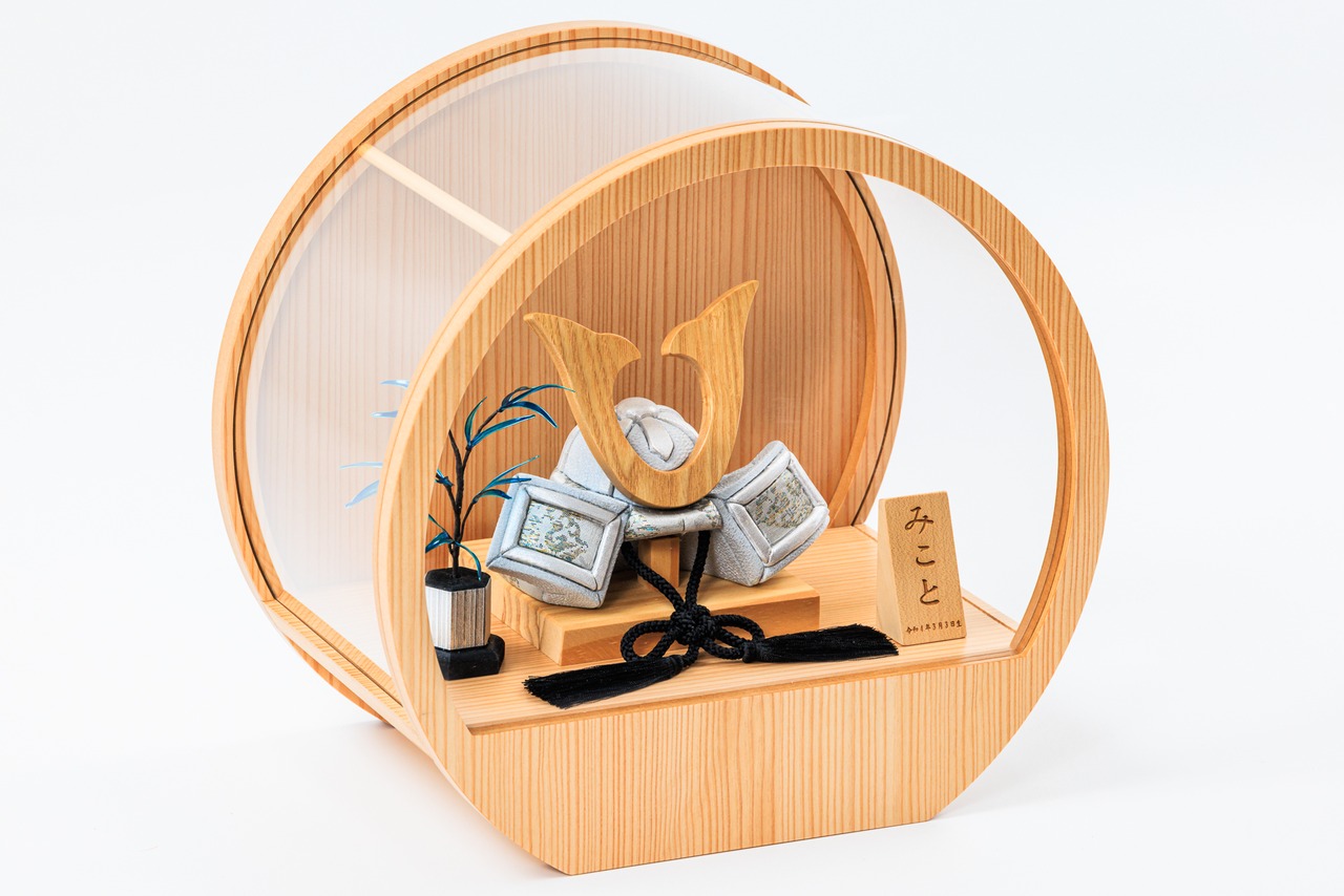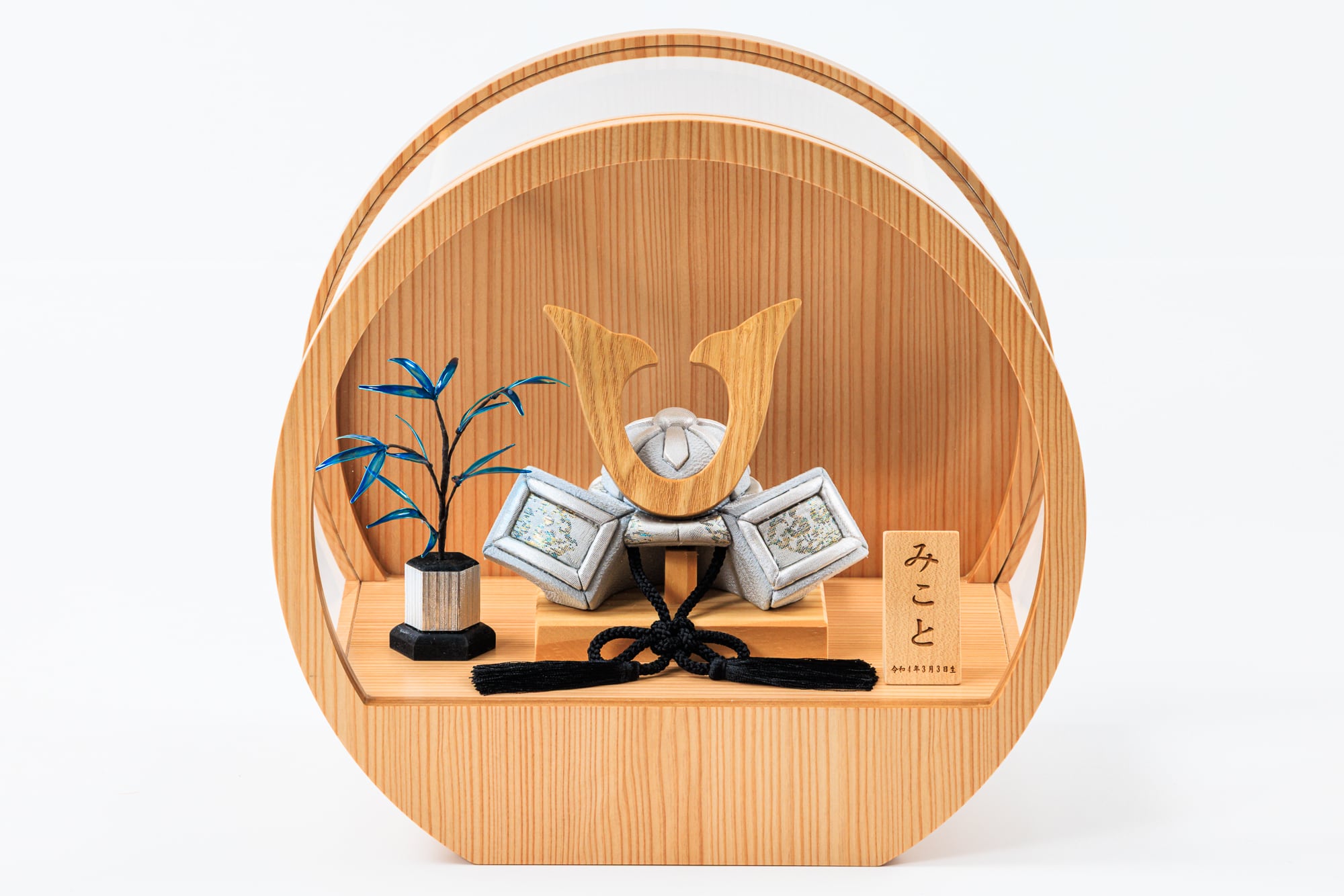 シルバーの木目込み兜はmikoto雛限定のカラー。