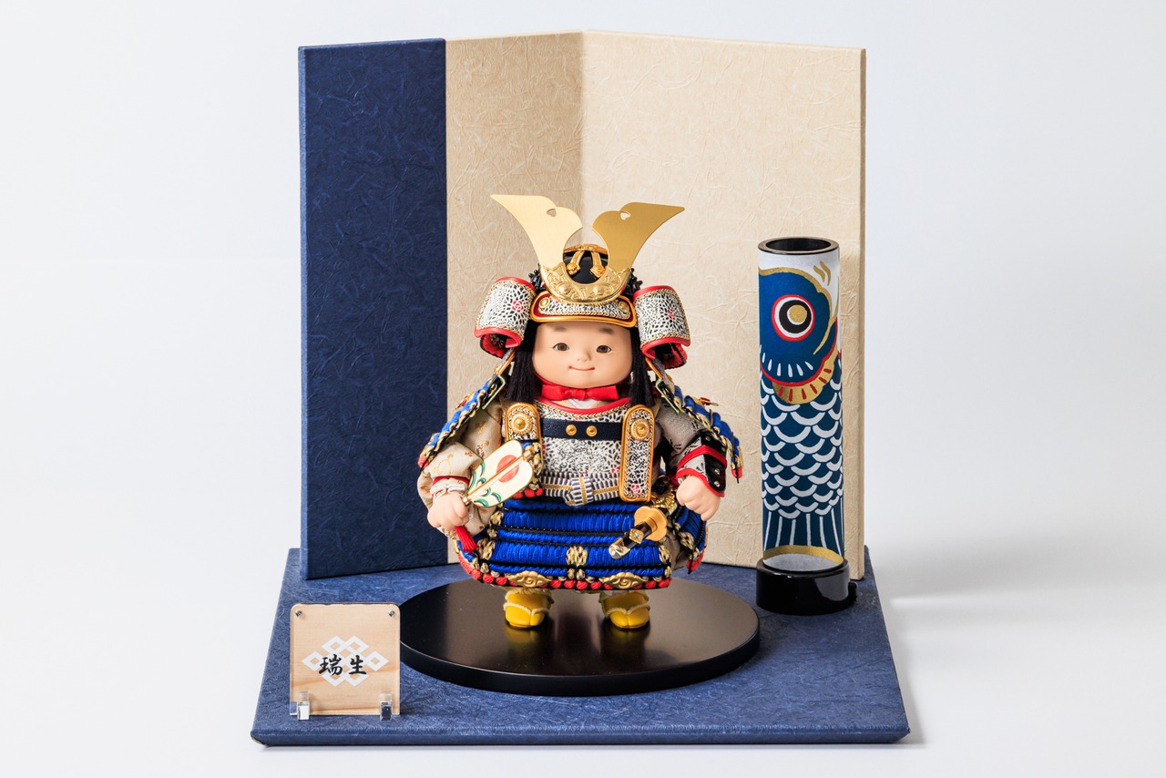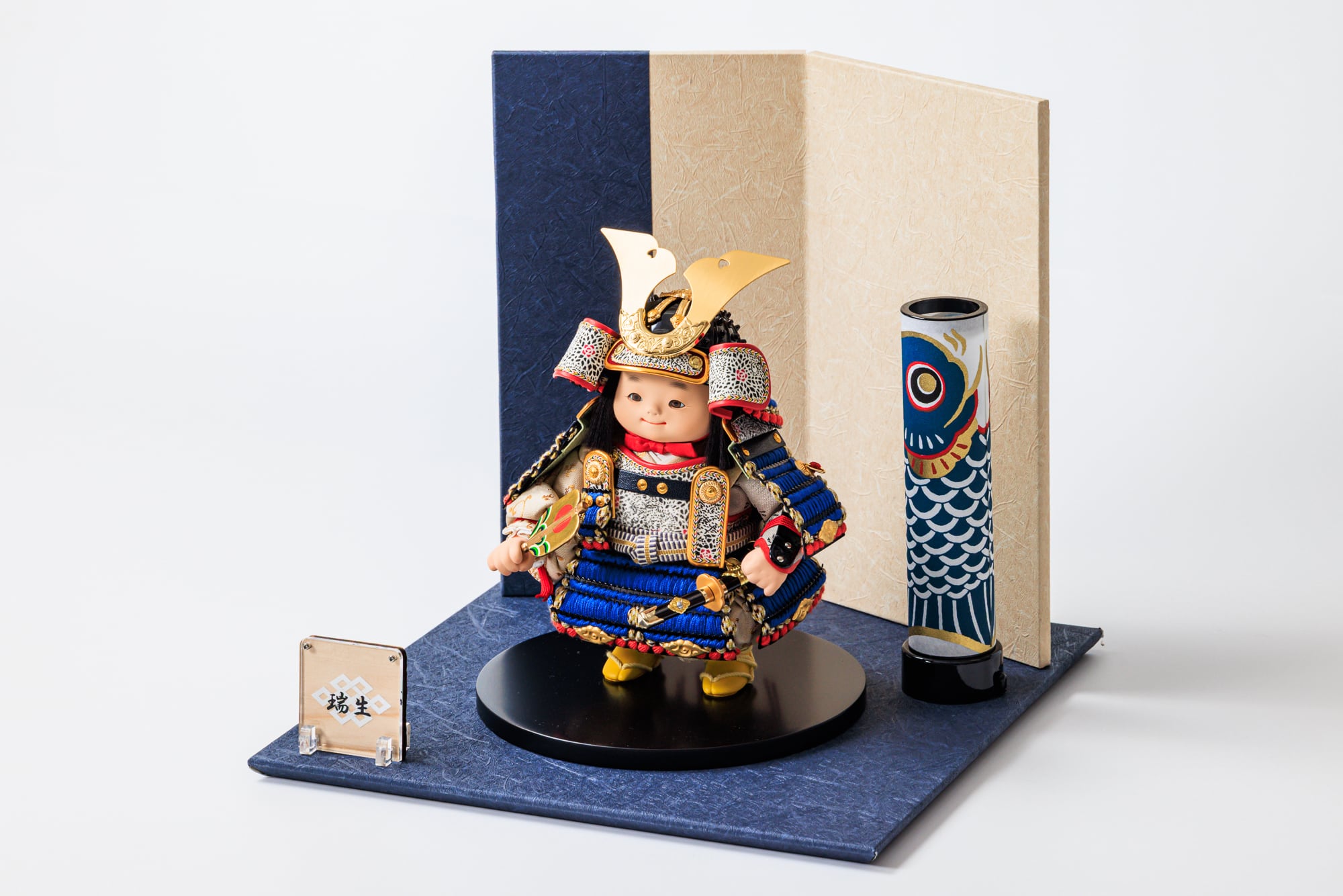 衣裳の色合いと合う深みのある青を基調としたセッティング