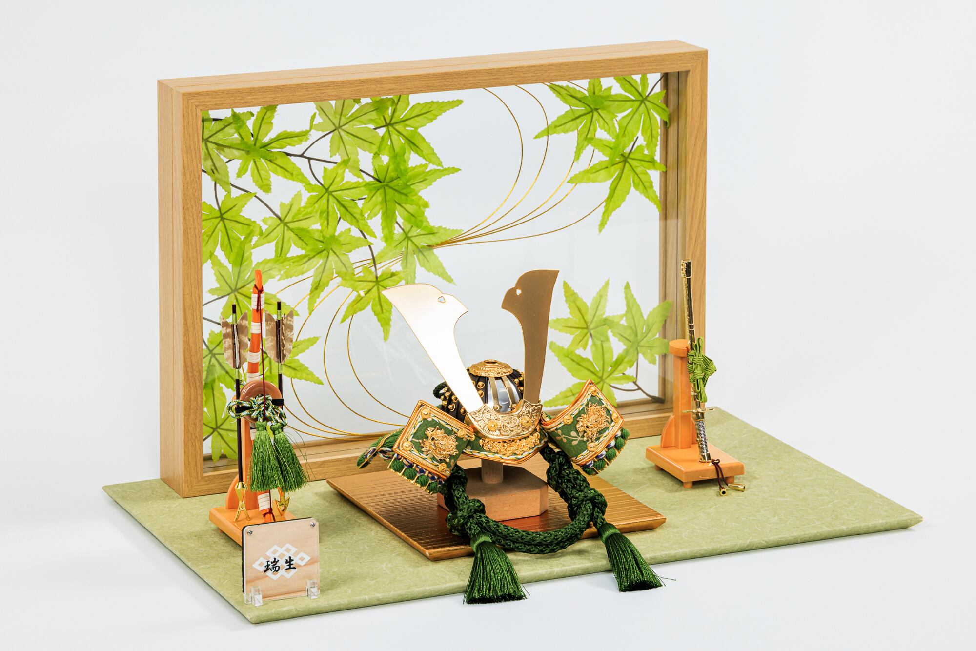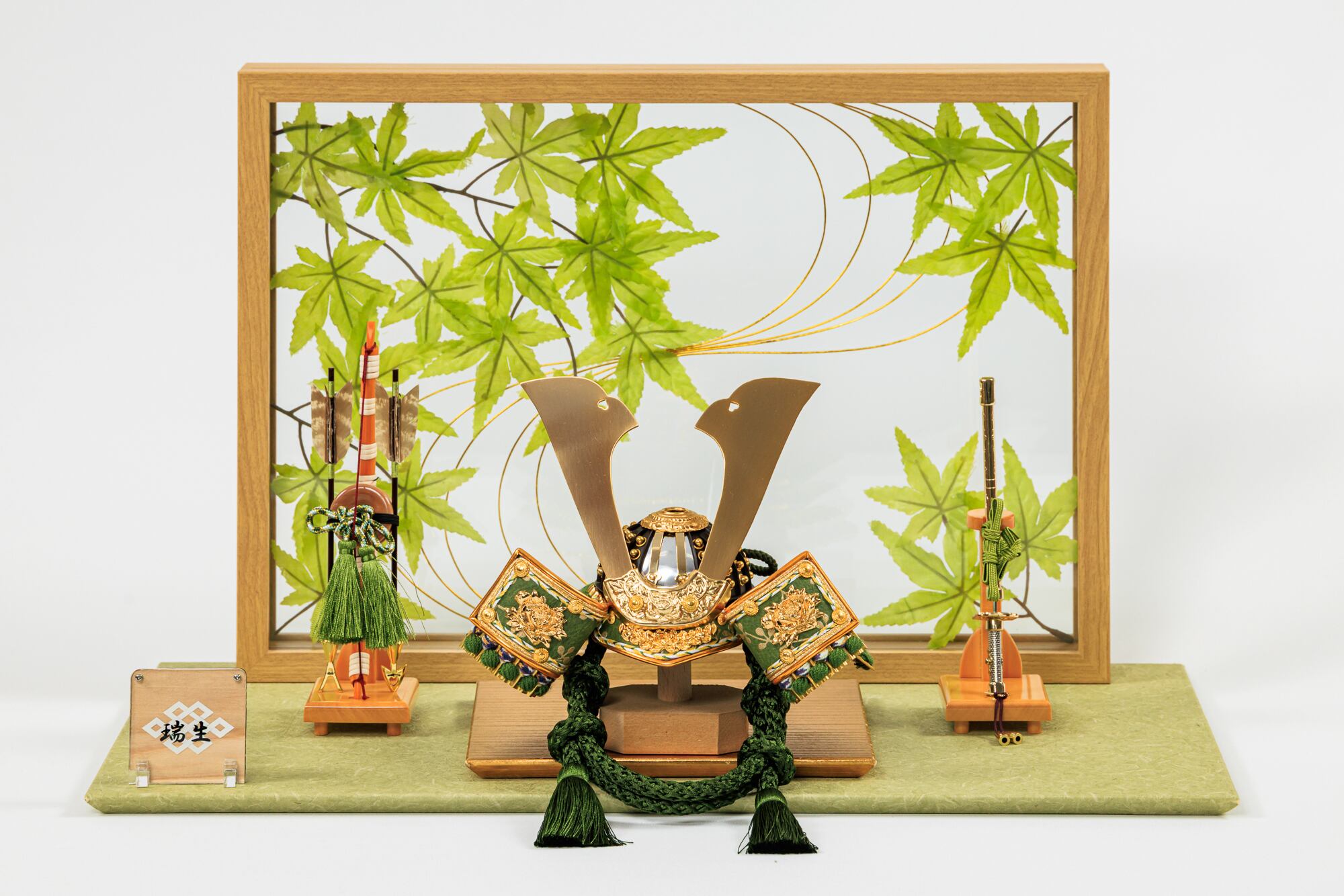 mikoto雛でしか買えない、オリジナル仕様の深緑の本格金属兜をインテリア風のセットに