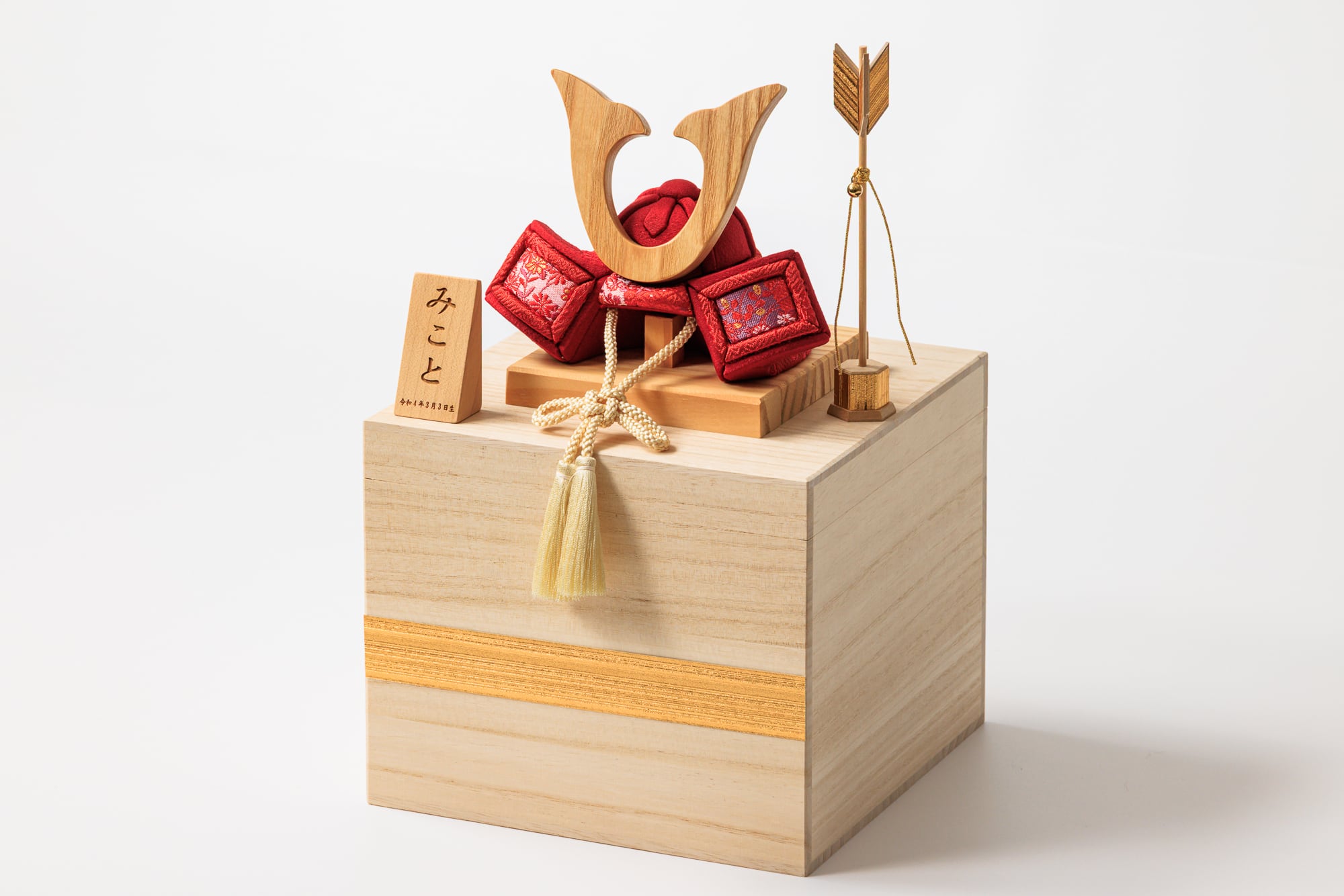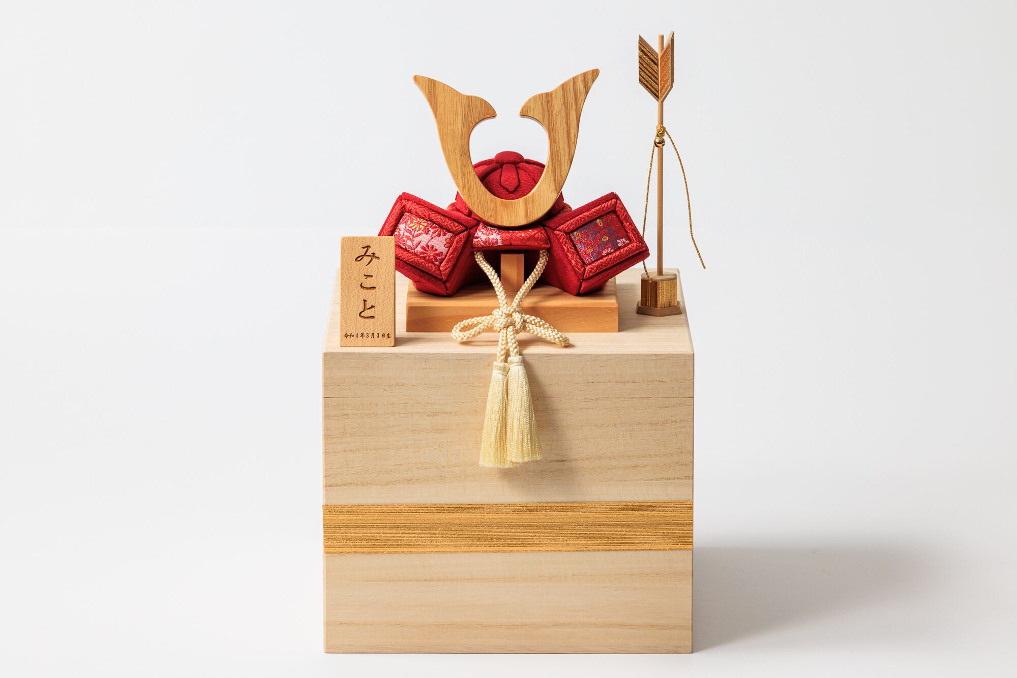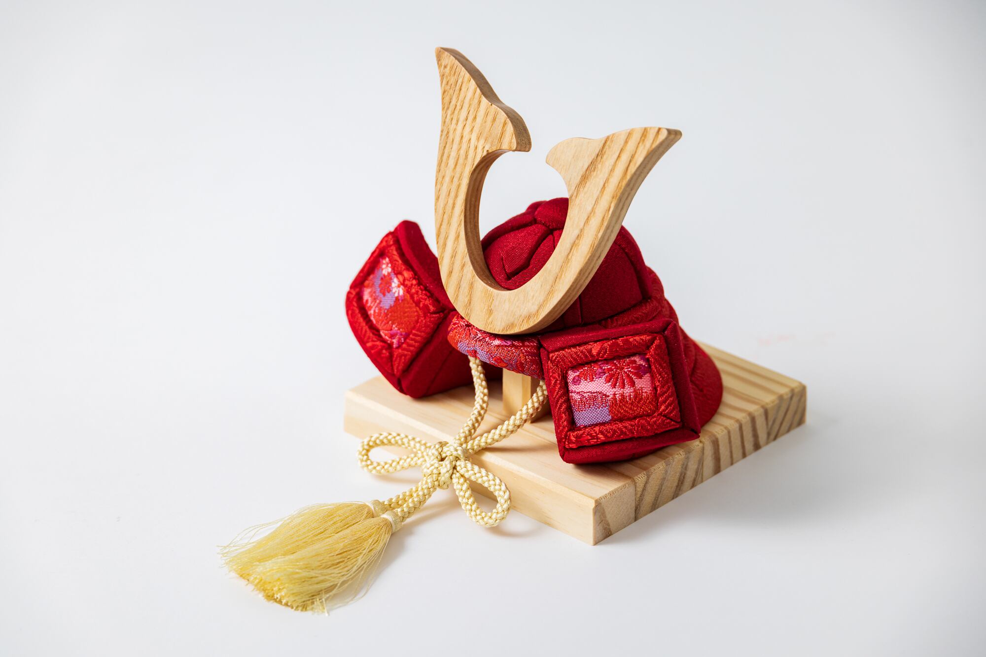 鮮やかな赤色の木目込み兜はmikoto雛でしか扱っていない特別カラー