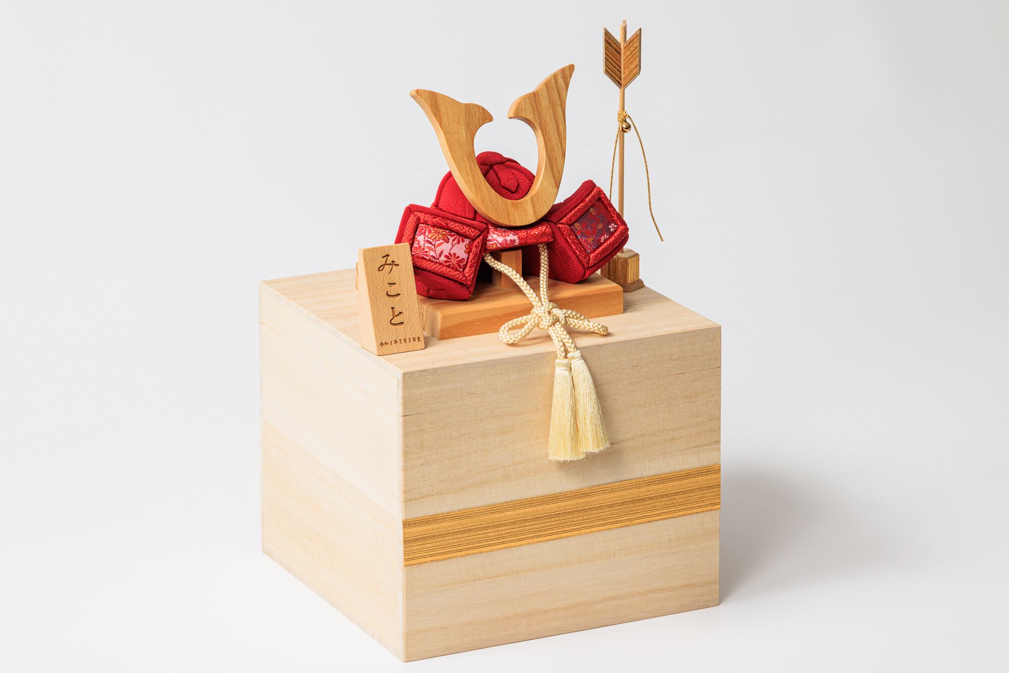 桐箱に木目込み兜のセッティングの収納飾り!