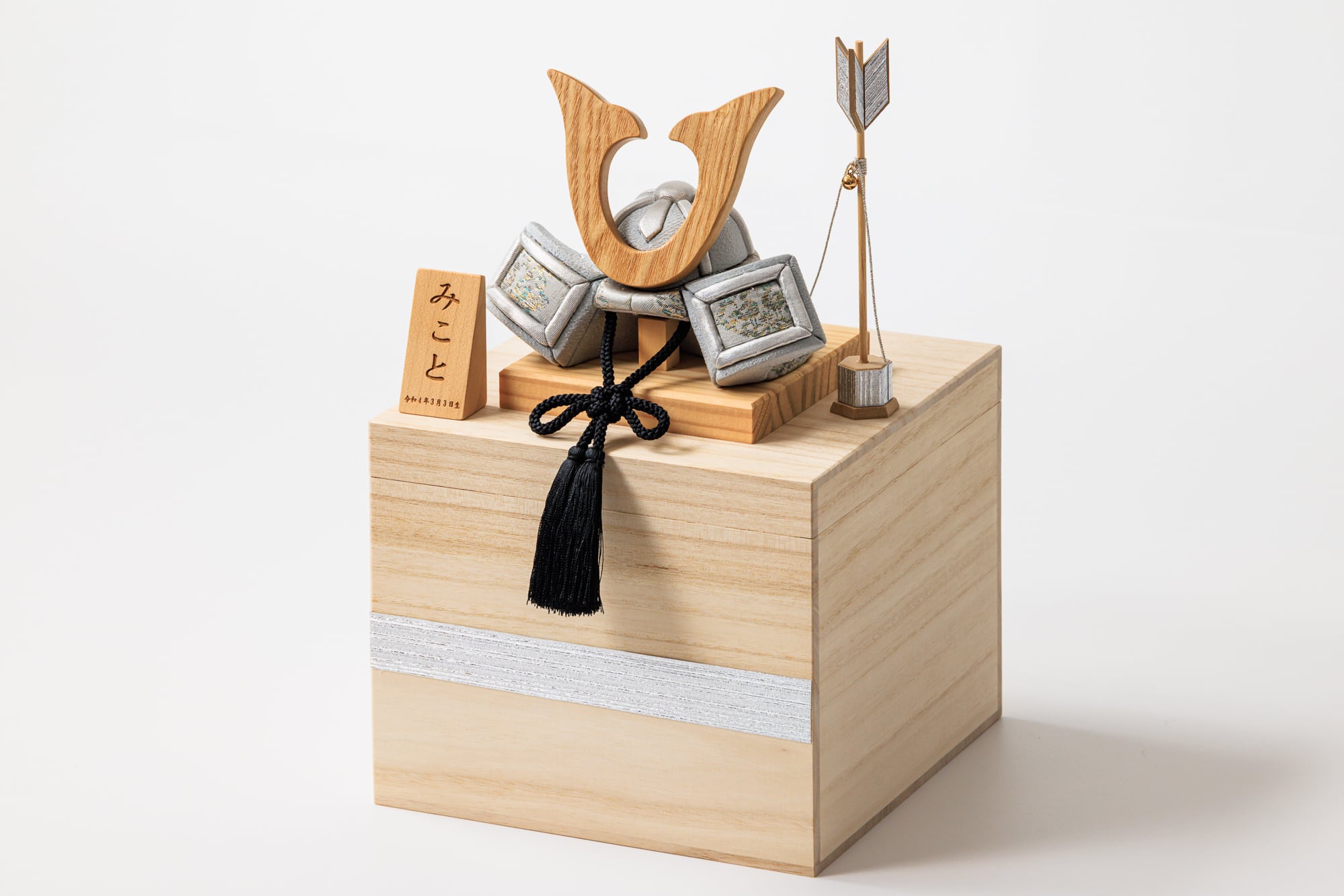 マットでかわいい銀色の木目込み兜はmikoto雛でしか扱っていない特別カラー