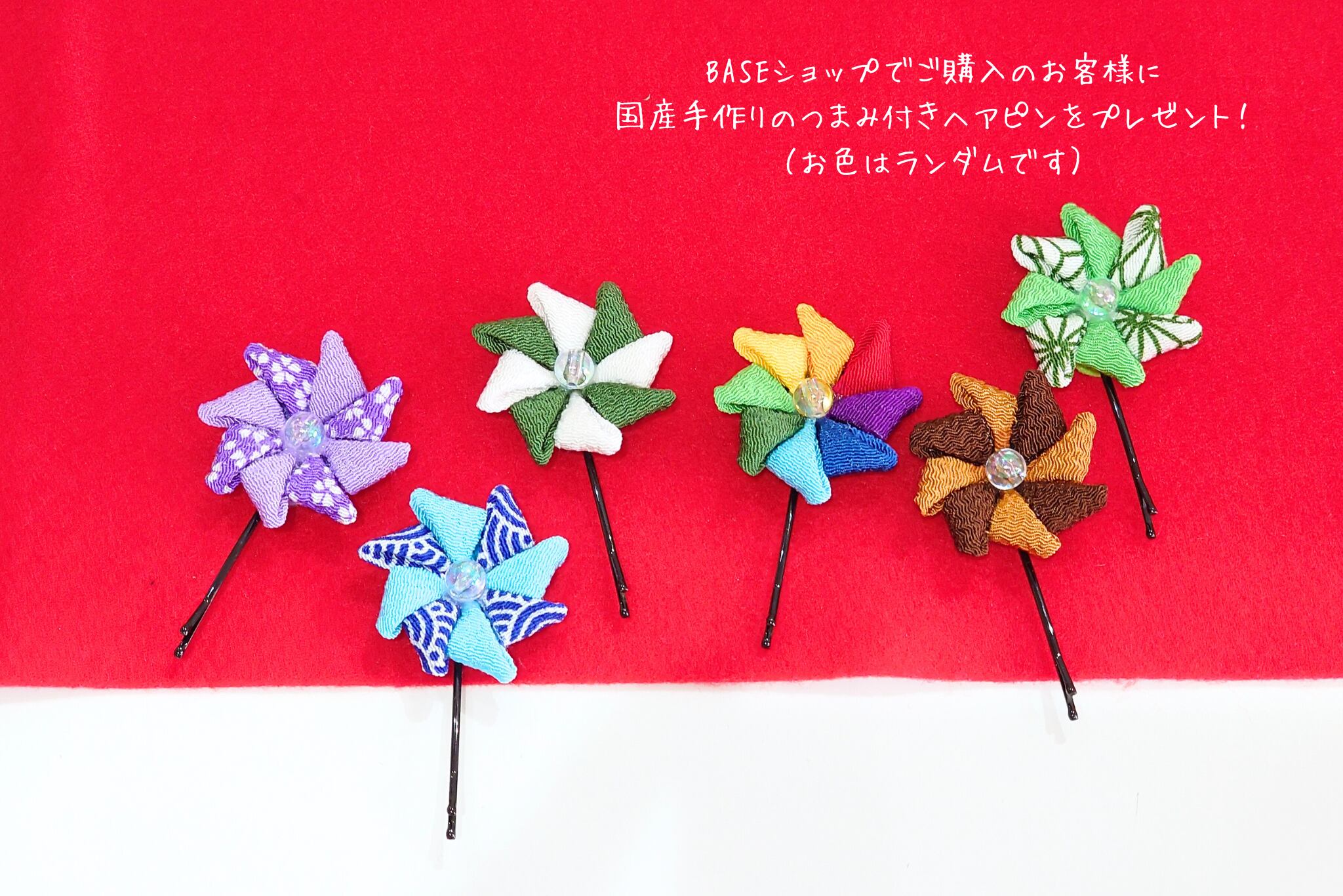 店長手作りの国産つまみ細工付きのヘアピンをプレゼント!