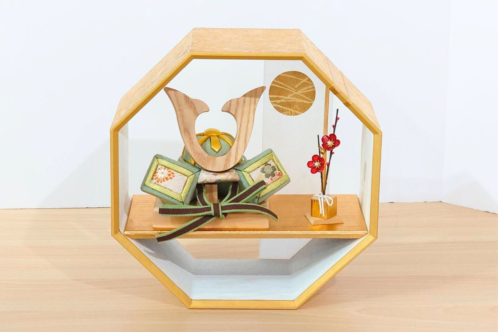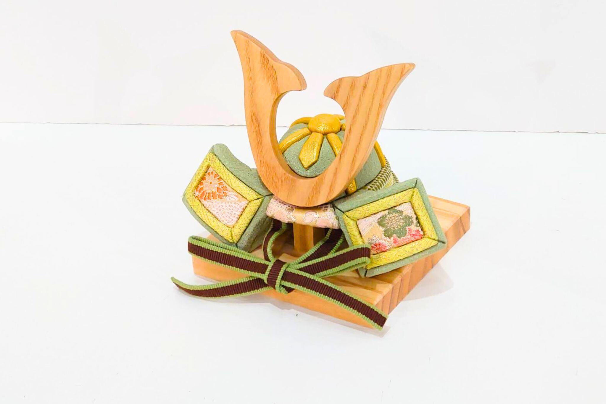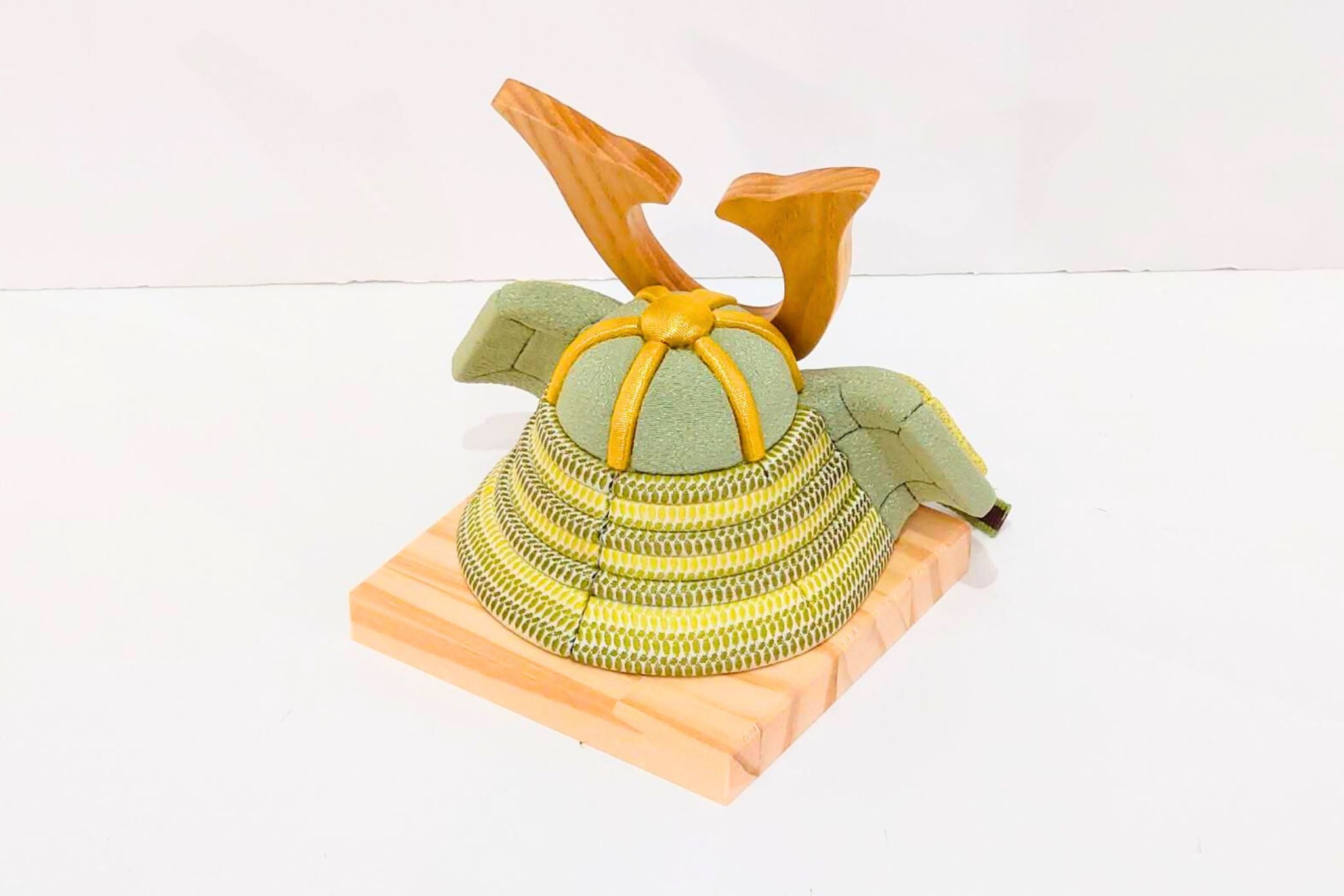 緑色の兜は毎年人気 伝統工芸士作木目込兜