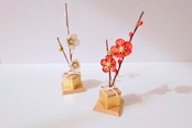 花:20号立花 紅白梅/クリアアートフラワー製品 宝来鈴付