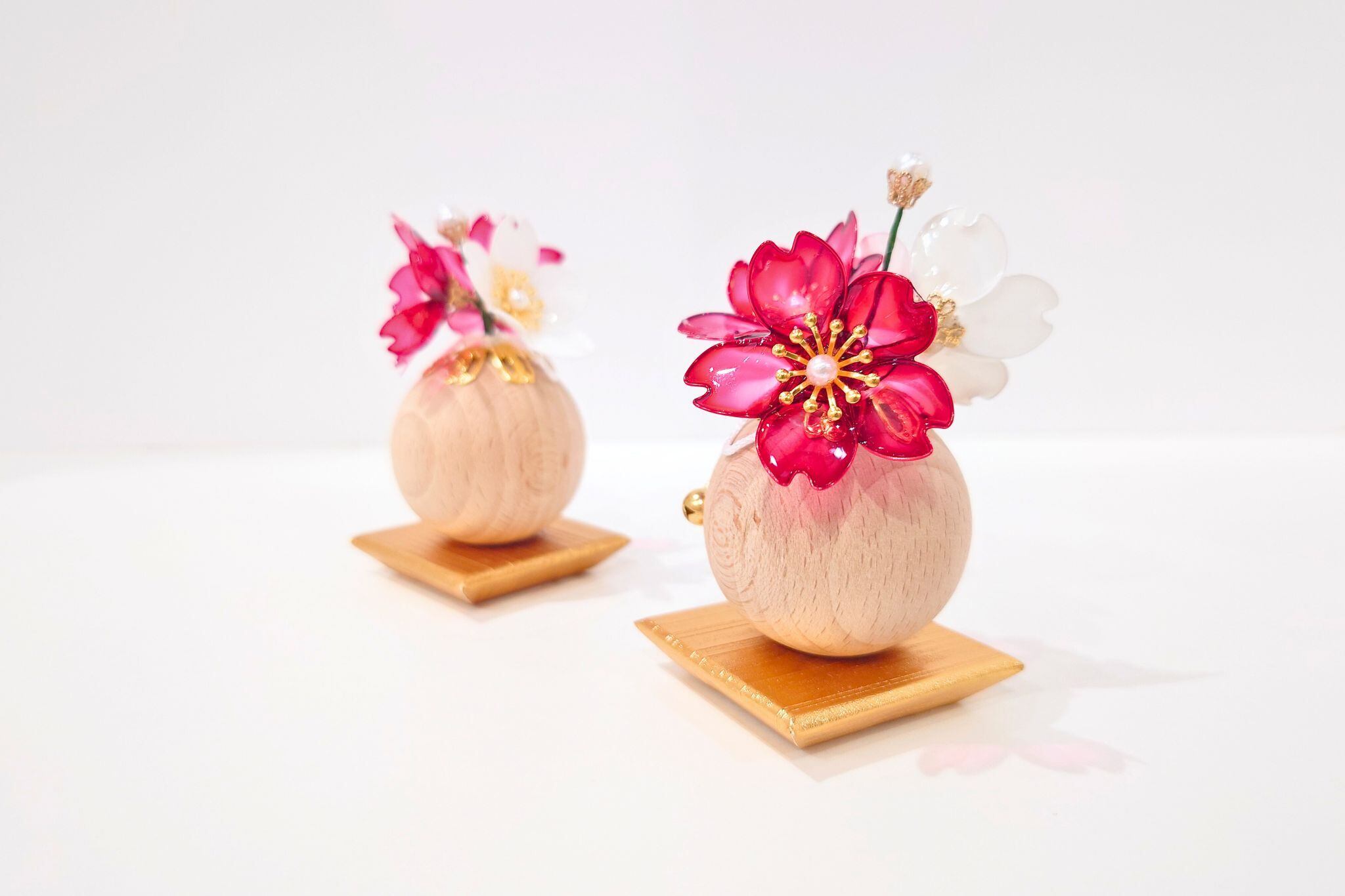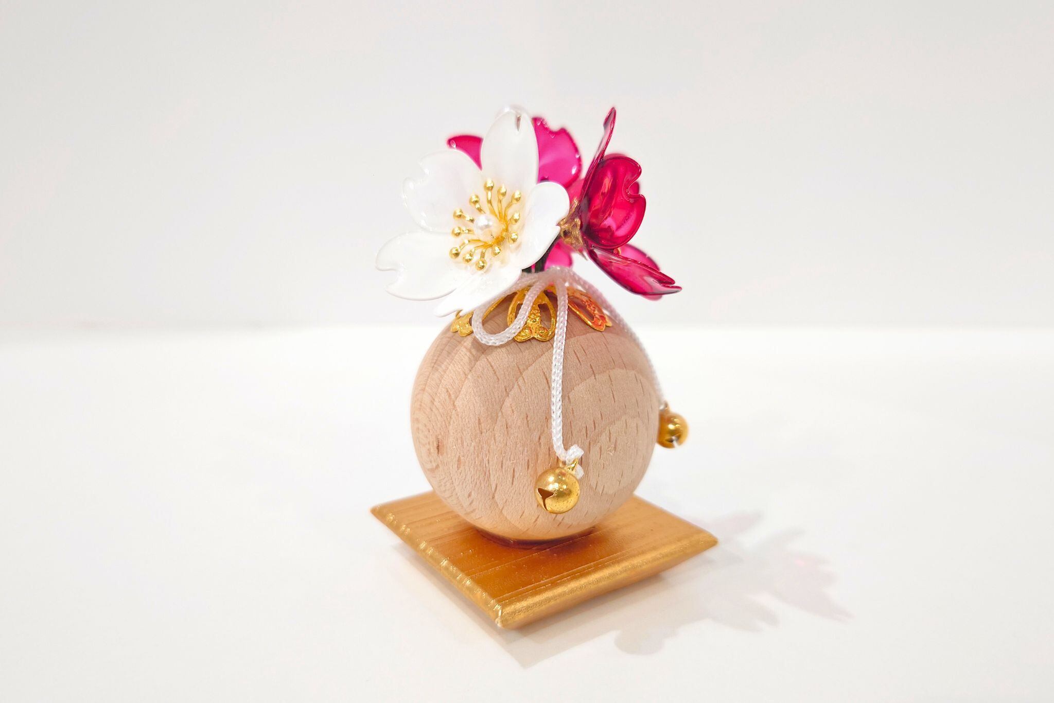花:25号 ひかり桜 チェリーレッド×白/クリアアートフラワー製品、幸を招く宝来鈴付